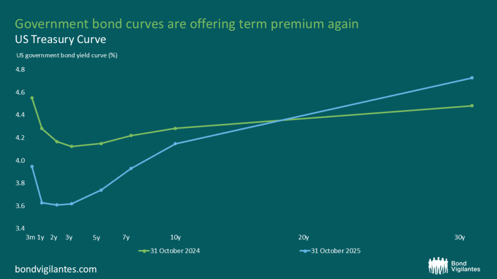 Compared to a year ago, the US Treasury curve has steepened considerably. While yields at the front end have dropped due to anticipated rate cuts, the long end of the curve has not budged. In fact, long-end bonds have sold off, giving bond investors the opportunity to lock in elevated yields. That’s quite a tempting thought, considering we’re talking about the US, which sets the global reference rate for many asset classes.