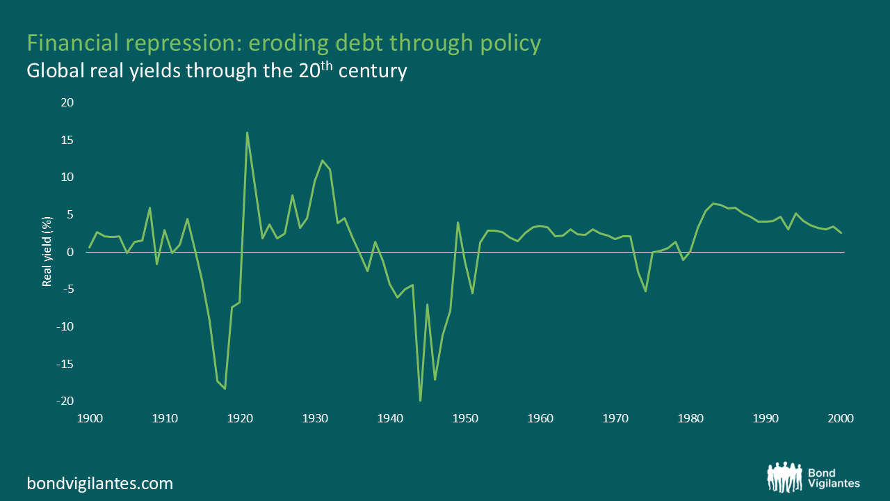 Governments and central banks effectively capped interest rates while letting inflation run high. With capital controls in place and a banking system that was required to hold government paper, real interest rates stayed negative for years. Investors earned less than inflation, and debt quietly melted away in real terms.