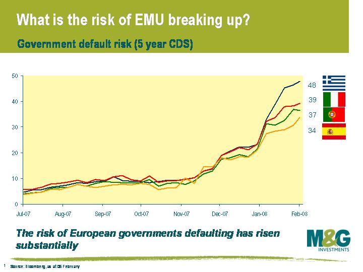 I believe that the risk of EMU collapsing is very small, precisely because the ECB will do anything to stop it from happening. The breakup of EMU will mean the death of the ECB, so it’s hardly in their interests. As European economic data continues to weaken over the coming months, I believe the ECB will start to downplay the inflation risks and increase emphasis on downside risks to growth. Then, from the summer, I think they will start a cycle of interest rate cutting. For this reason, I have moved longer duration in the M&G European Corporate Bond Fund, as I believe rates will fall by more than the market is pricing in.